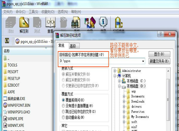 然后打开D:PGOS (双击系统安装,也有可能是ghost安装器)这个是我举例的目录,当然你可以自己选择喜欢的。就是不能有中文,也不能是C盘或者是即将要安装的分区。